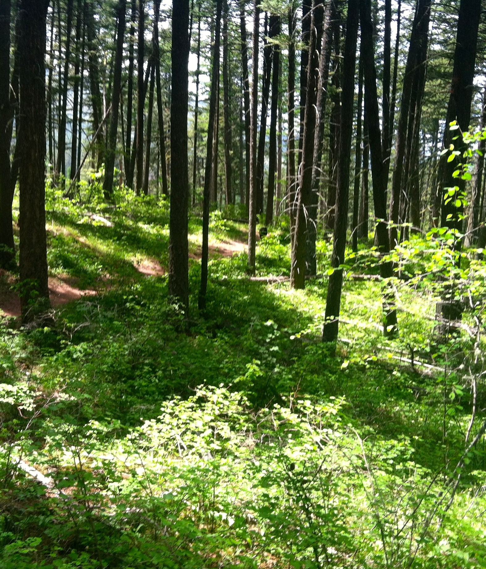 The ground beneath my feet is quiet. Fallen pine needles diminish the weight of movement, nearly muting the sounds of the forest. A distant woodpecker hammers a rhythmic beat, to which I continue in silenced syncopation.