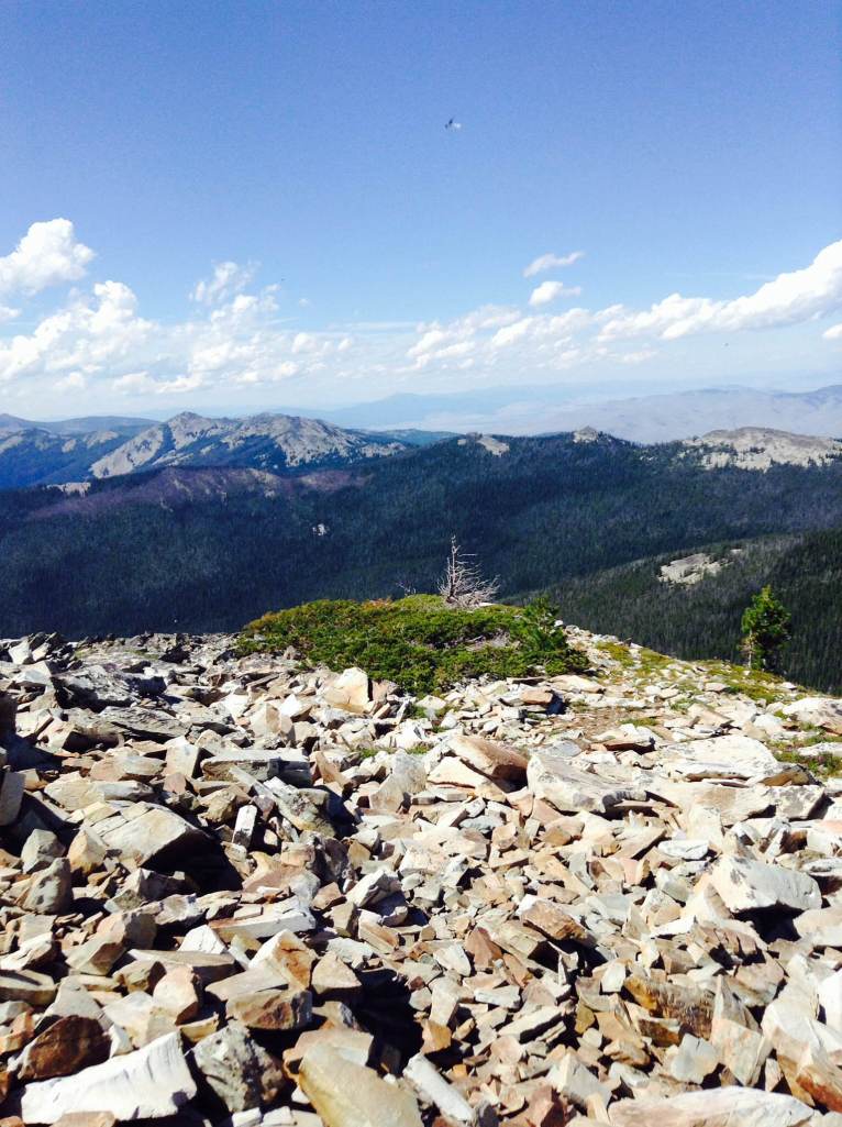 The Hike: A consistent ascent amid forested trail until you reach the talus slope at the top. Many, many fallen trees to cross. Scant huckleberries due to elevation. (Which means no bears. But I had bear spray just in case.) Amazing pine tree smell.