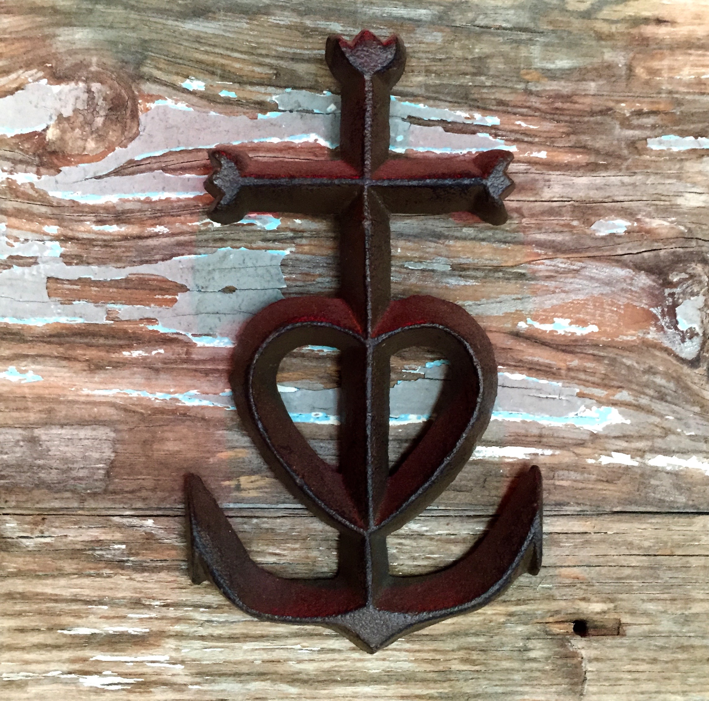 The Camargue cross is an emblem formed with a Latin cross whose upper ends represent a three-pronged fork ( a working tool used by “gardians” (cowboys) ) and whose lower end is a sea anchor topped by a heart.