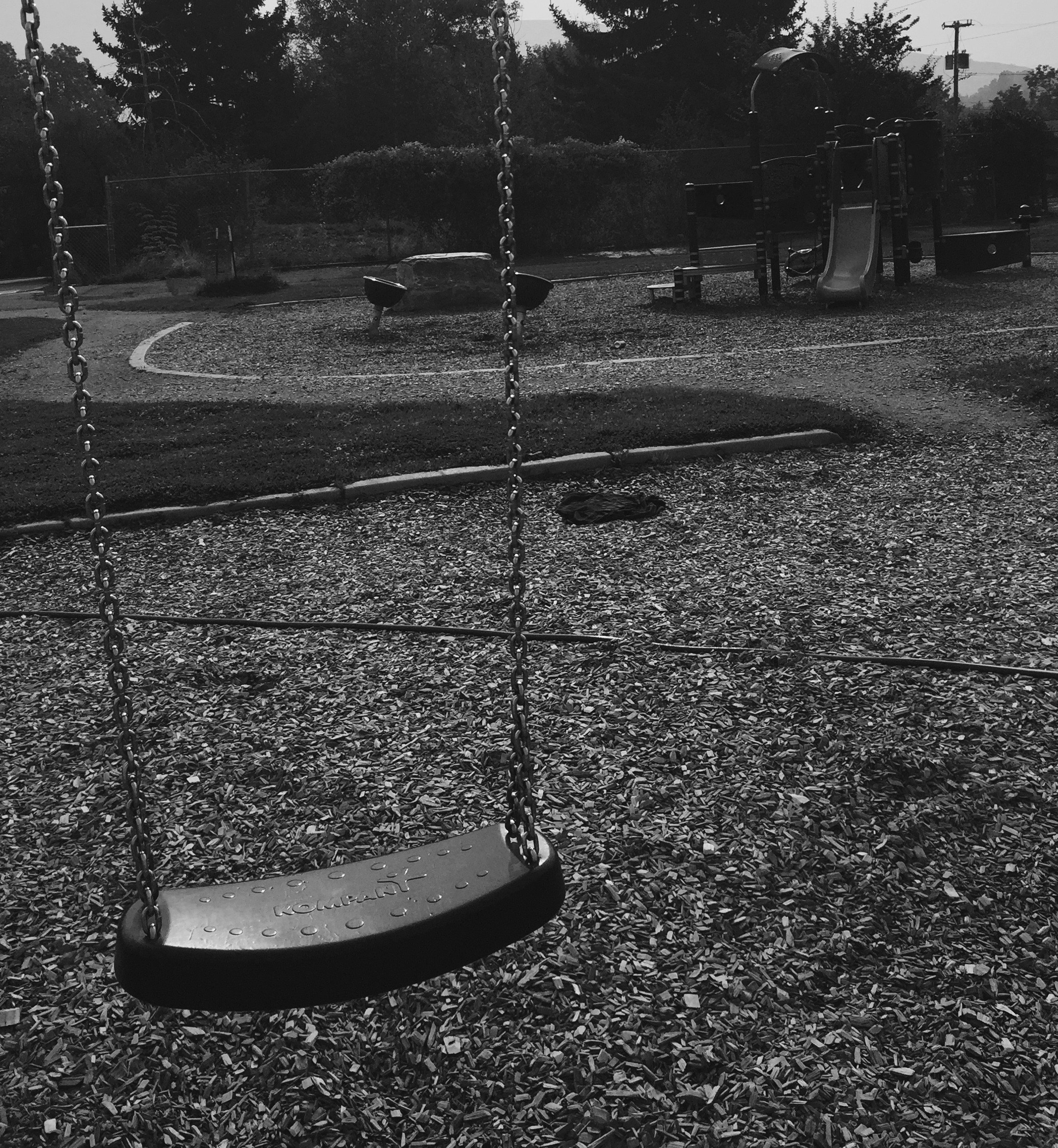 Empty swings are haunting. Life is choked from this playground as smoke from nearby wildfires adds to the sense of Armageddon.