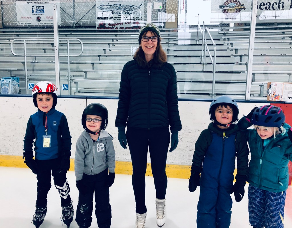 Coach Barbie and a class of Snowplow Sam Students for the USFSA (United States Figure Skating Association) Learn to Skate Program