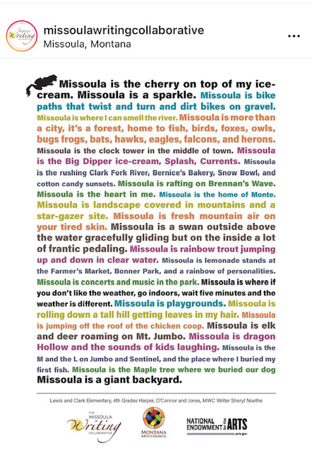 As a board member of the Missoula Writing Collaborative, and in honor of National Poetry Month, it gives me joy to share a poem written by fourth-graders at Lewis and Clark Elementary in Missoula.